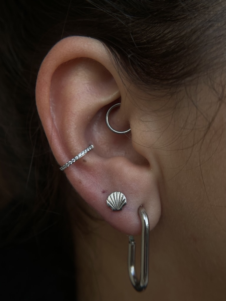 Posição lateral, que faz com que seja mais apropriada para hélix, conch, tragus, rook, lobe ou nostril.