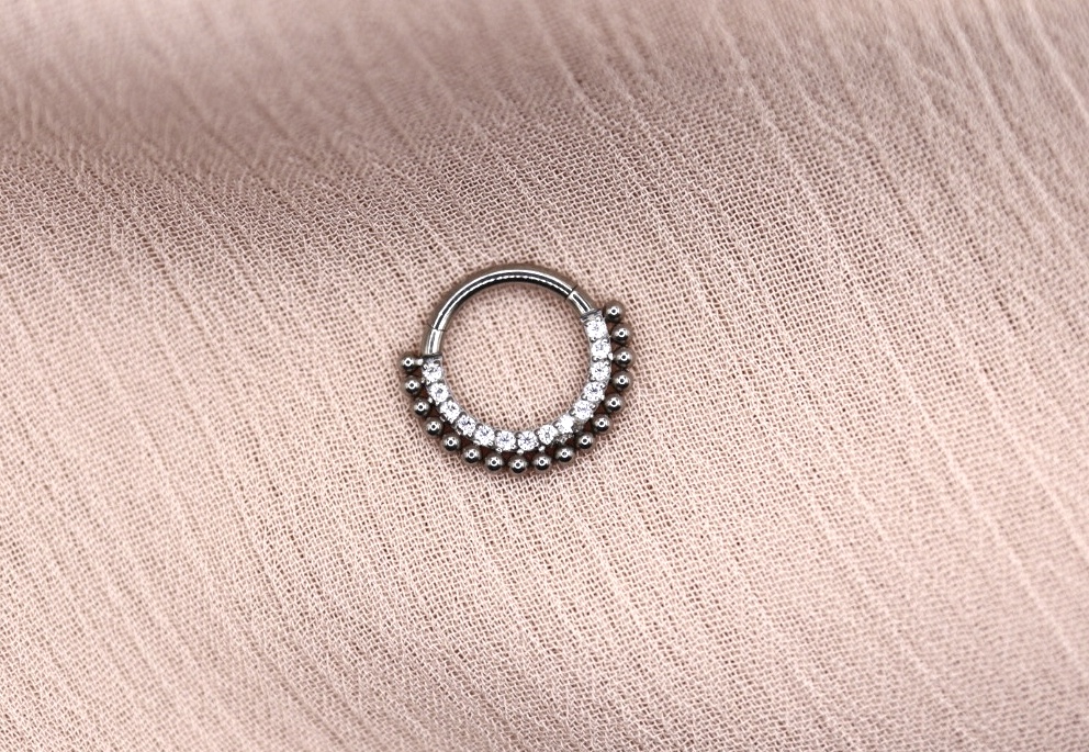 Argola clicker com uma fila de beads e outra de zircónias.