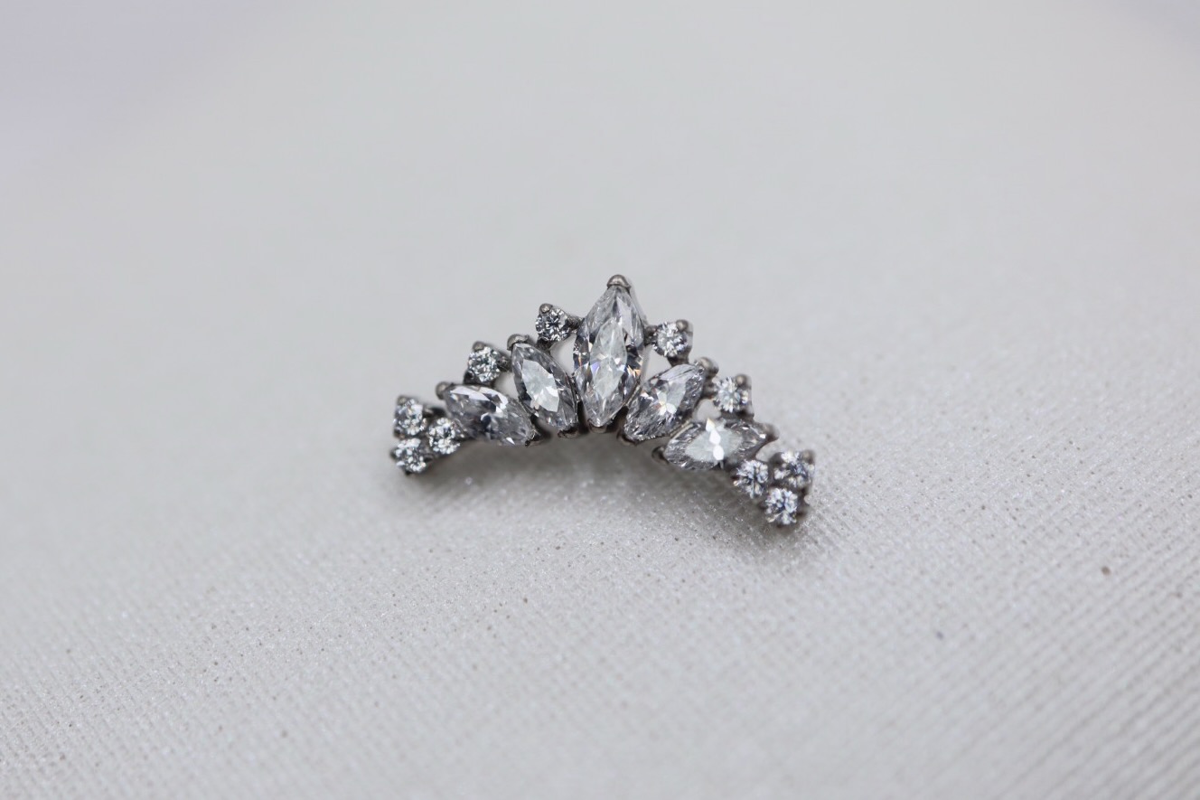 Piercing labret com zircónias de vários tamanhos.