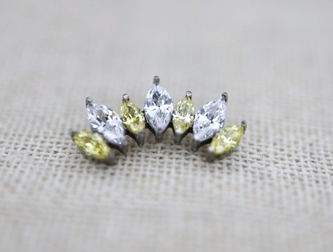 Piercing labret com zircónias brancas e amarelas