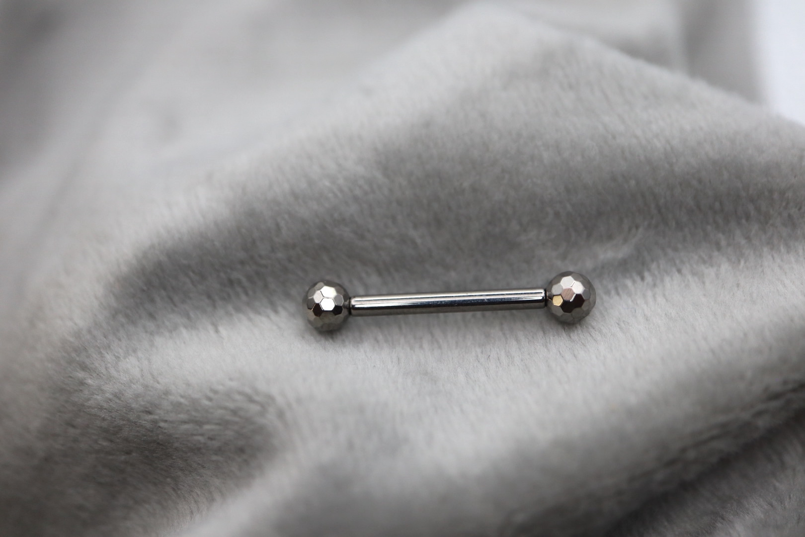 Piercing barbell com duas bolas de 3mm - efeito disco