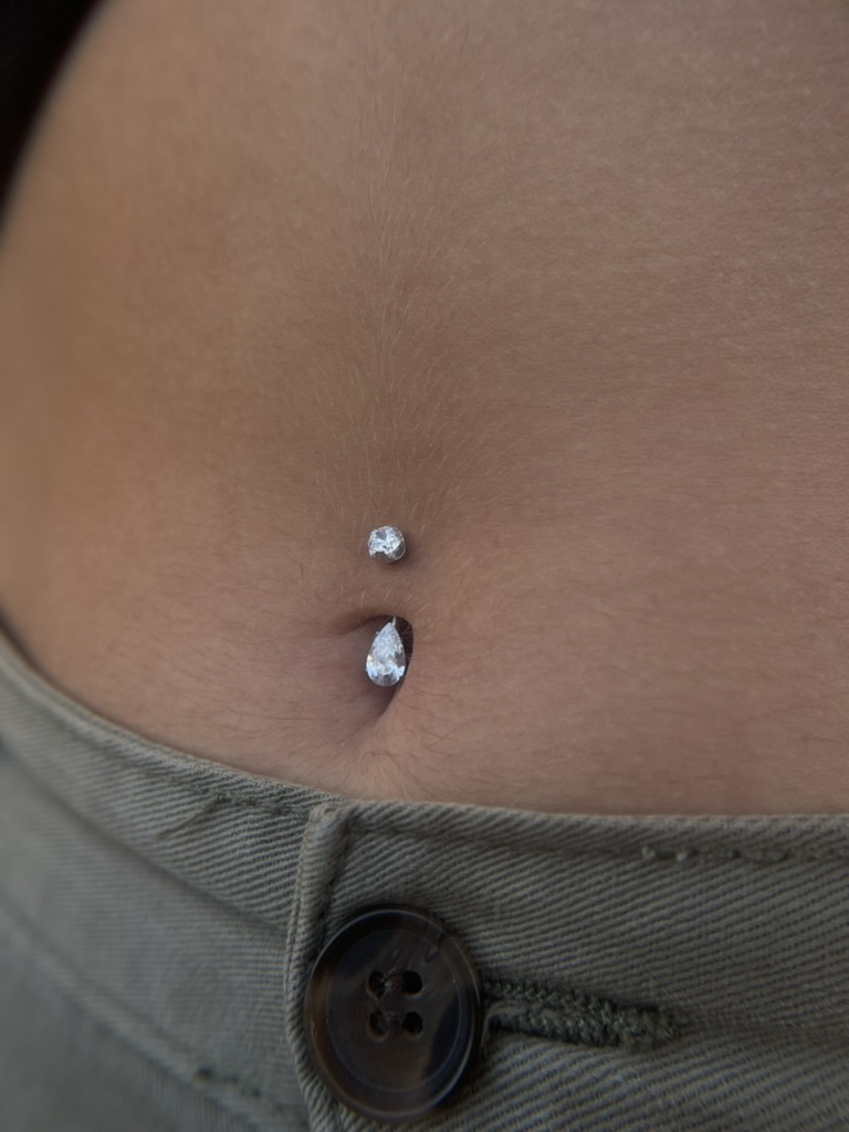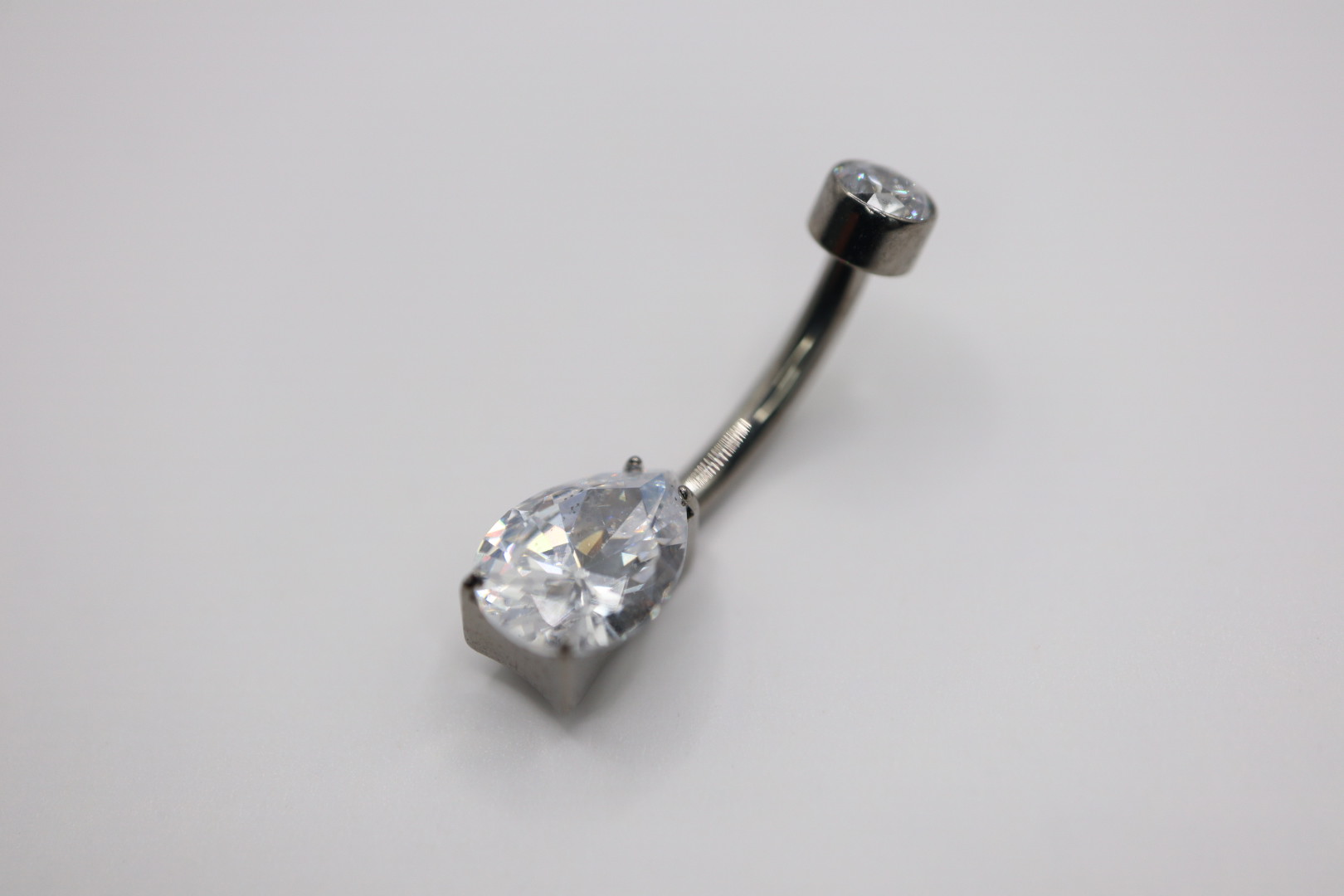 Piercing com zircónia em cima e uma zircónia em formato de gota em baixo. Barra de 1.6mm em sistema de rosca interna, com o topo superior amovível. Uma jóia confecionada em titânio ASTM F-136, o material mais indicado para perfuração corporal, altamente resistente a desgaste e erosão e livre de níquel e outros componentes que possam causar qualquer reação alérgica no corpo humano.