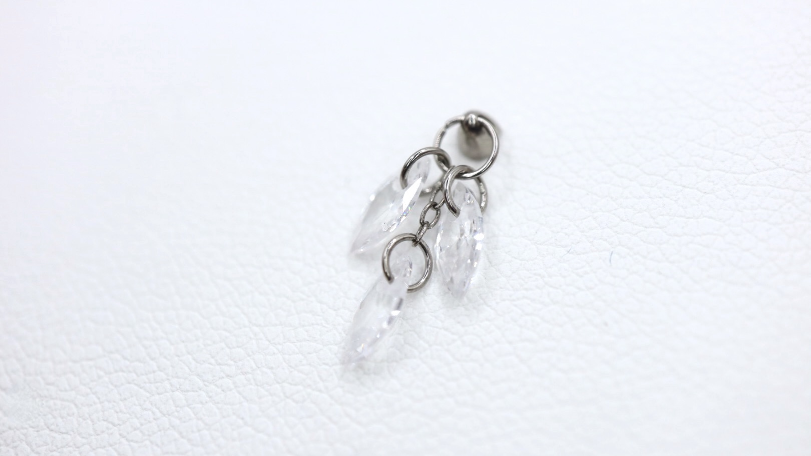 Piercing labret com pendente com três zircónias em forma de gota