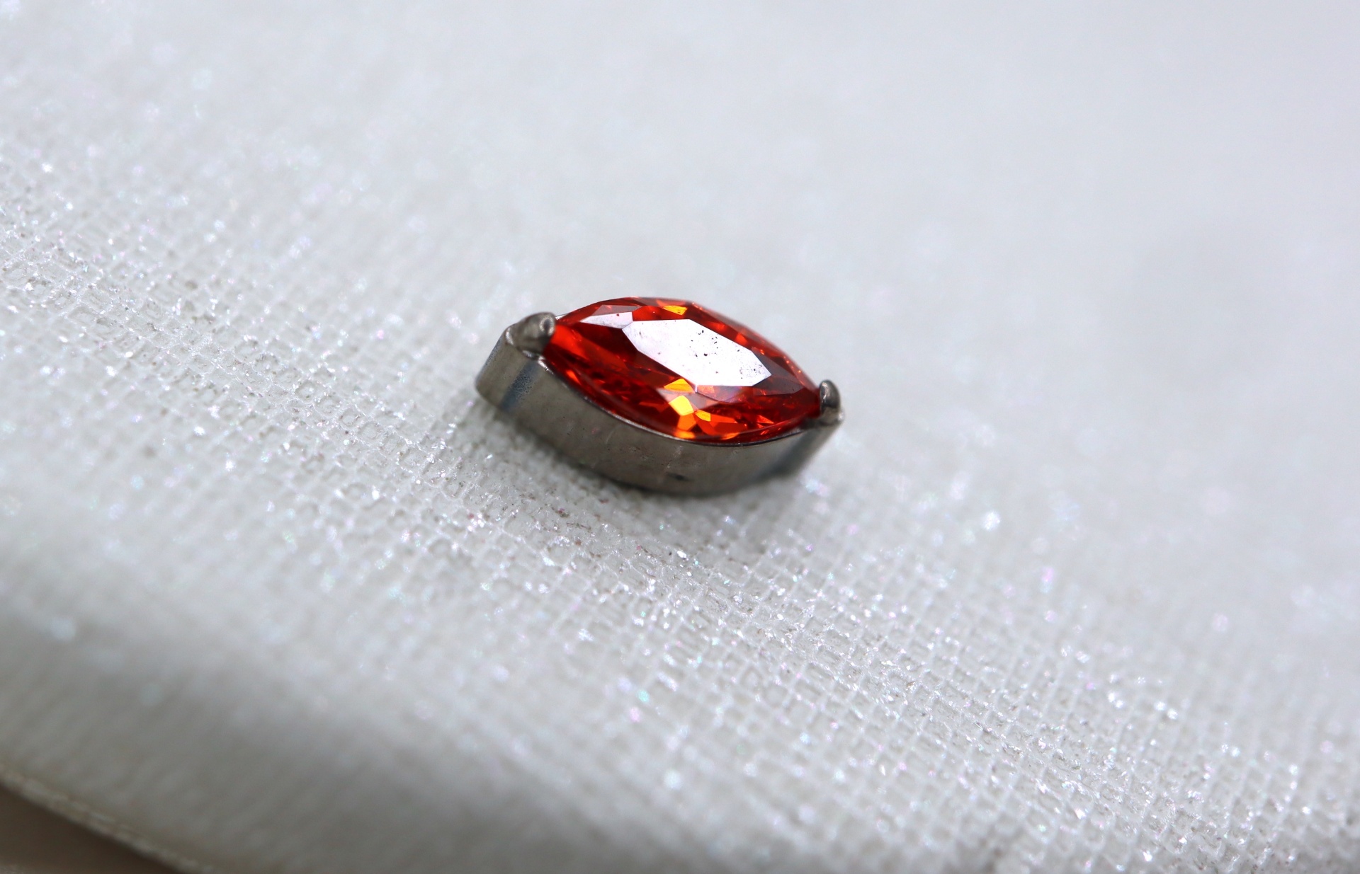 Piercing labret com uma zircónia em formato navete de tom vermelho