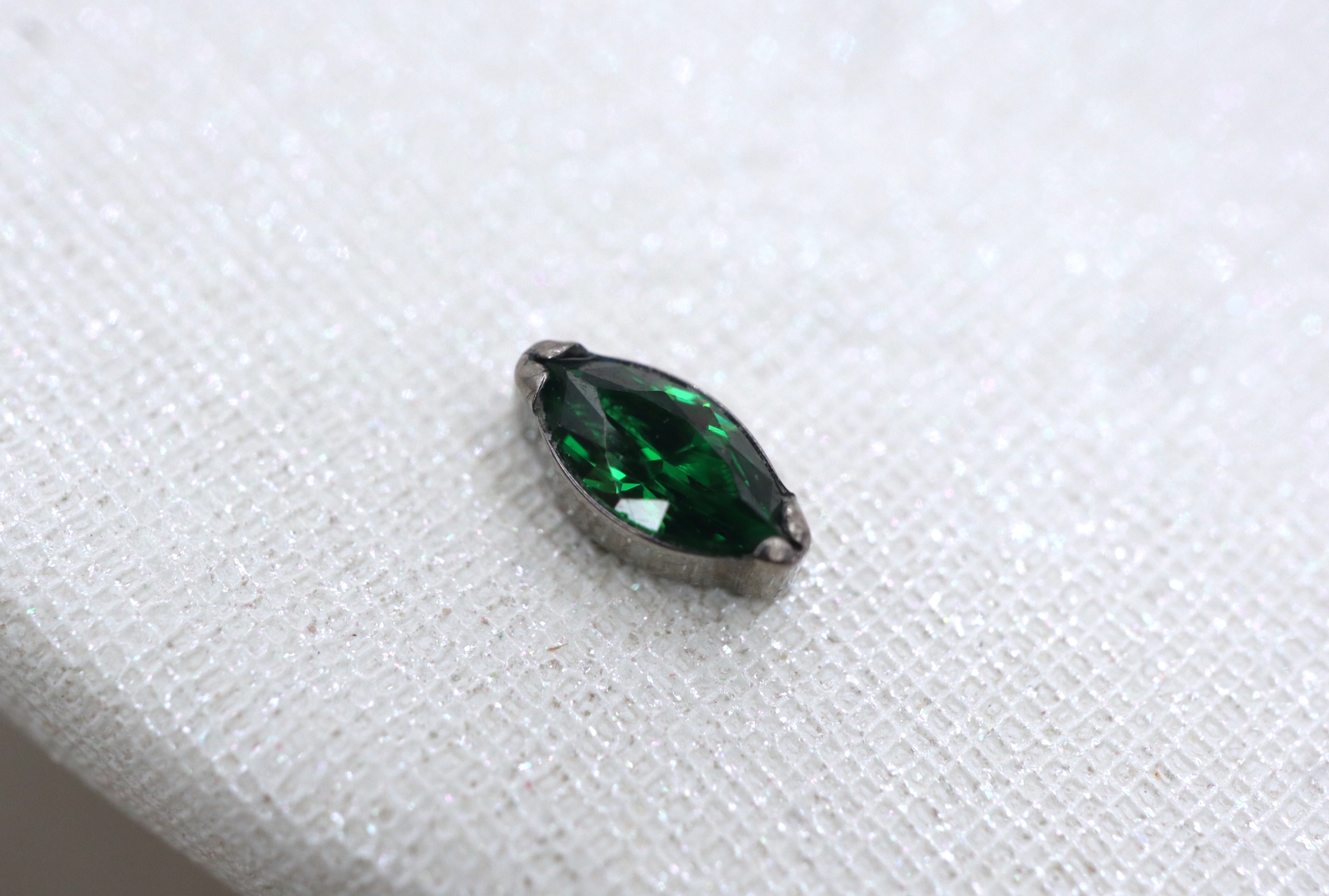 Piercing labret com uma zircónia em formato navete de tom verde