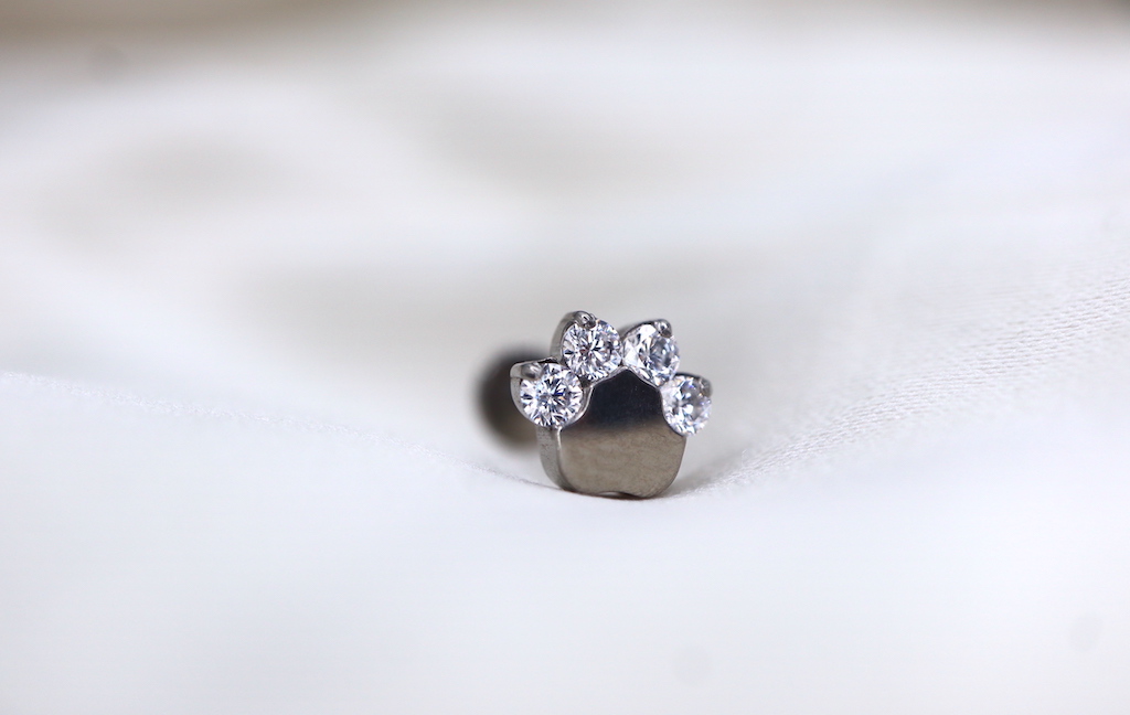 Piercing labret com pata com zircónias.