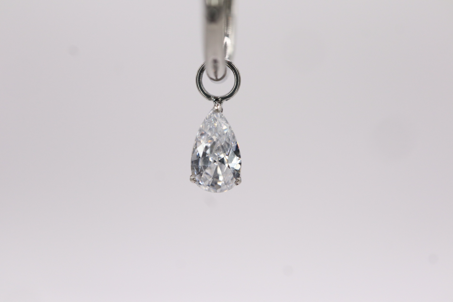 Pendente de 6mm com zircónia em formato de gota, apropriado para argolas até 2mm de espessura.