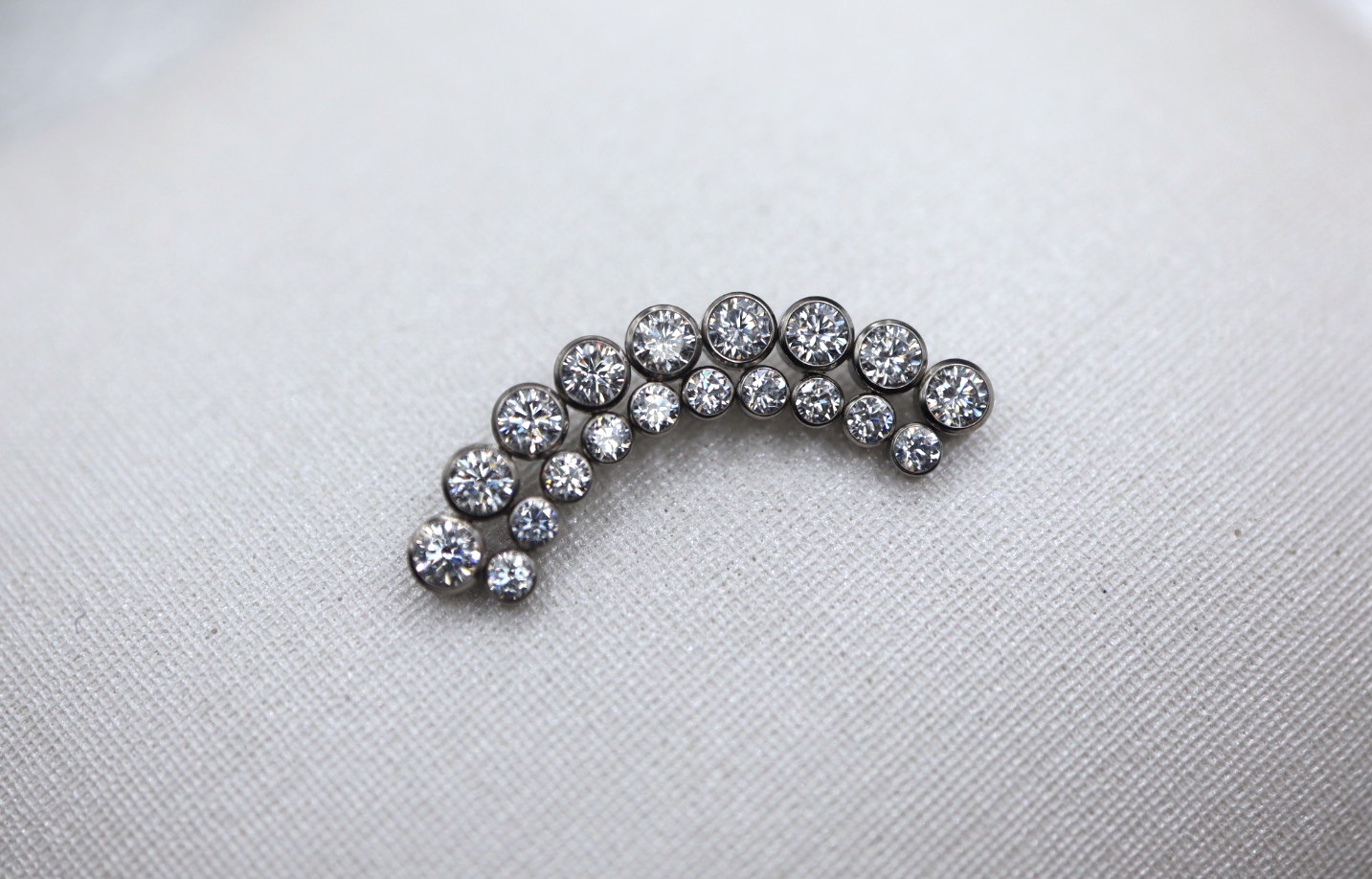 Piercing labret com um cluster com zircónias de 2.5mm e 1.5mm, com um tamanho total de 18mm.