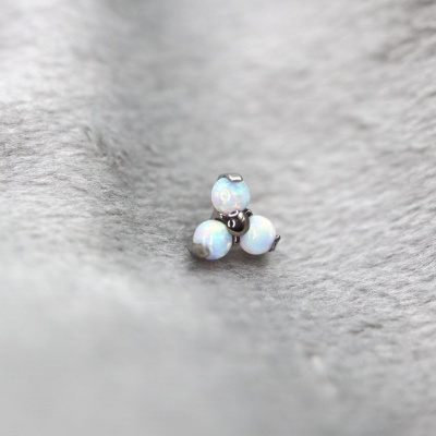 Piercing labret com uma trinity com três opalas sintéticas.