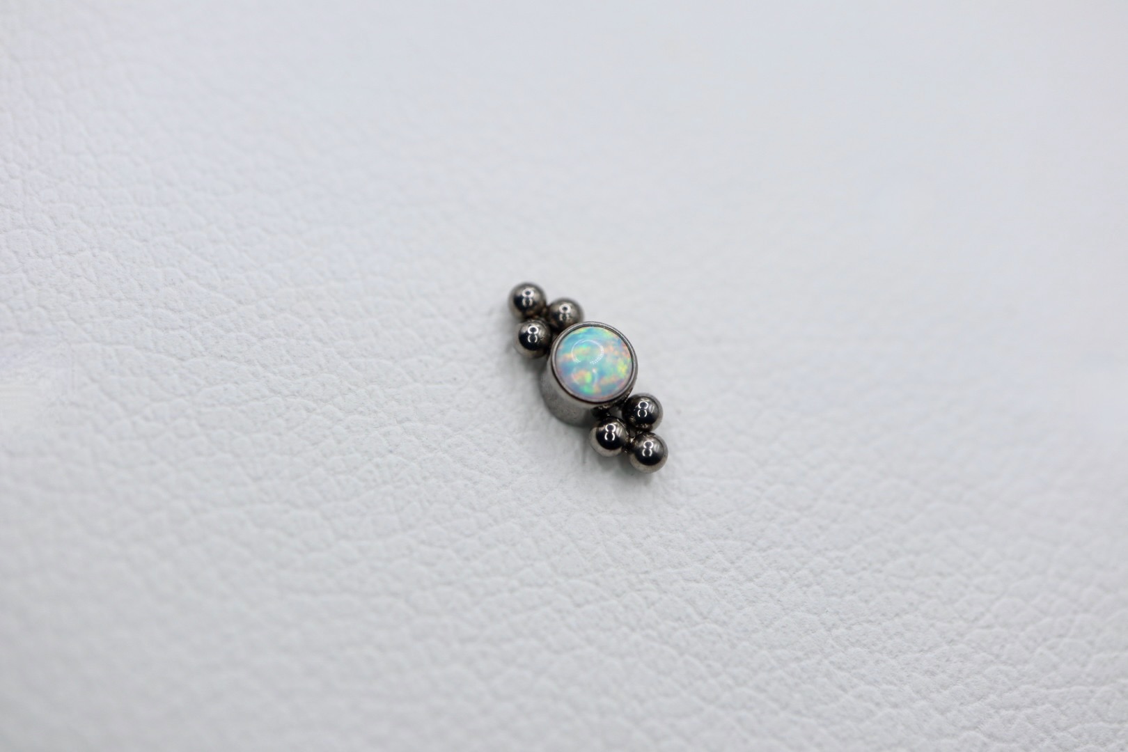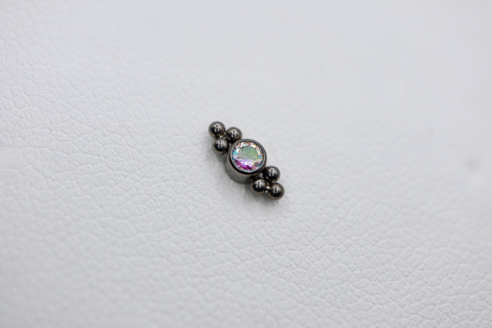 Piercing labret com uma zircónia com 3mm, disponível em seis cores: branco, opal, azul, champagne, aurora boreal, opala roxa