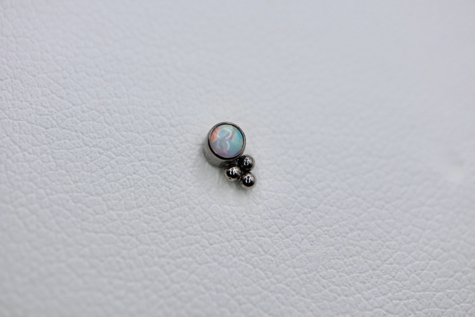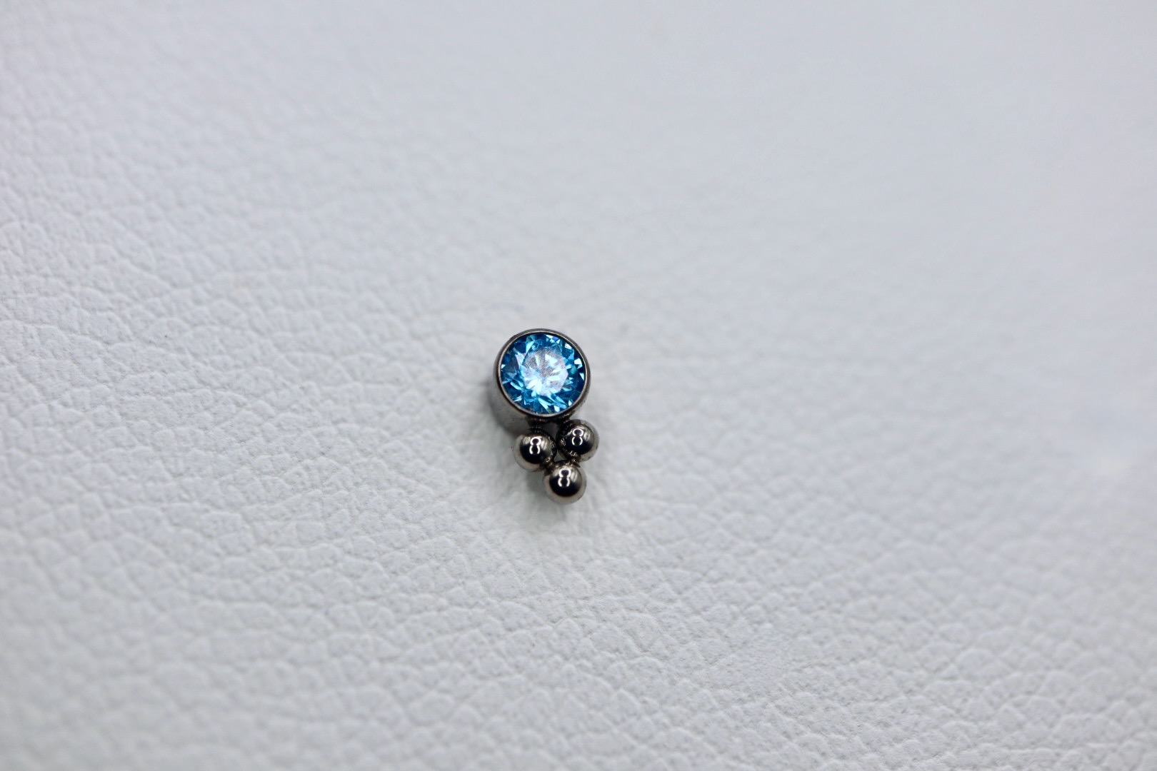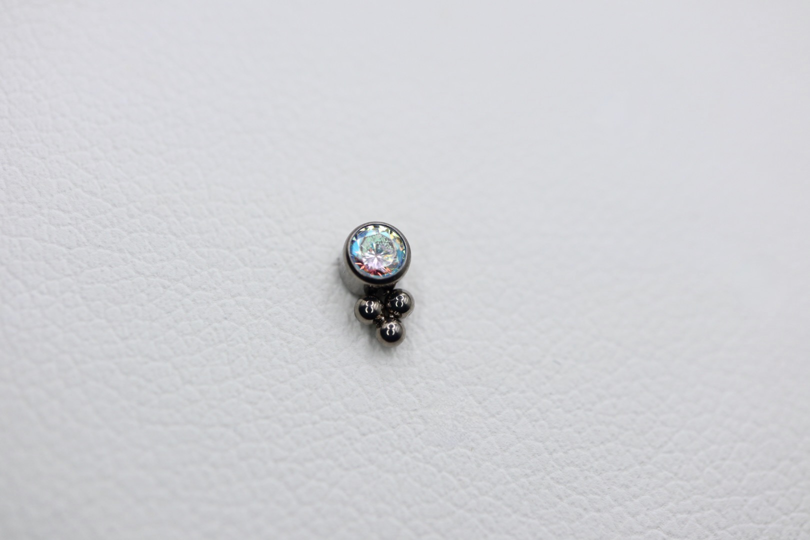 Piercing labret com uma zircónia com 3mm, disponível em cinco cores: branco, opal, azul, champagne, aurora boreal